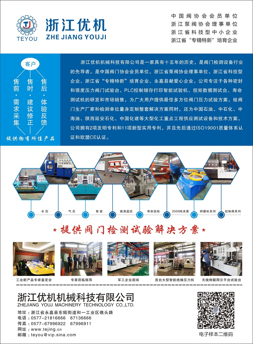 浙江優(yōu)機機械科技有限公司憑借研發(fā)投產的智能集成密封液壓機,成功入榜浙江省先進制造業(yè)首臺套企業(yè)名單,浙江優(yōu)機機械科技有限公司多個產品通過國家閥門(浙江)檢測中心檢測,相關技術經(jīng)浙江省省級工業(yè)新產品新技術鑒定,擁有2項發(fā)明專利和11項新型實用專利,是浙江省泵閥協(xié)會理事單位、浙江省“專精特新”培育企業(yè)、浙江省專利示范企業(yè)、浙江省科技創(chuàng)新型企業(yè)、溫州市科技創(chuàng)新企業(yè)、永嘉縣百星企業(yè)、永嘉縣愛心企業(yè)、中國石油準入供應單位、中國寶豐能源準入供應單位、山東核電設備有限公司合格供應商。